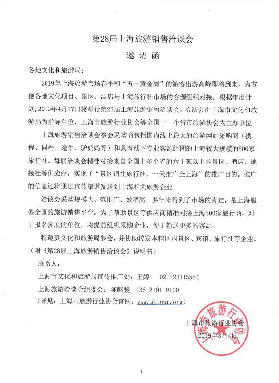第28屆上海旅游銷售洽談會邀請函