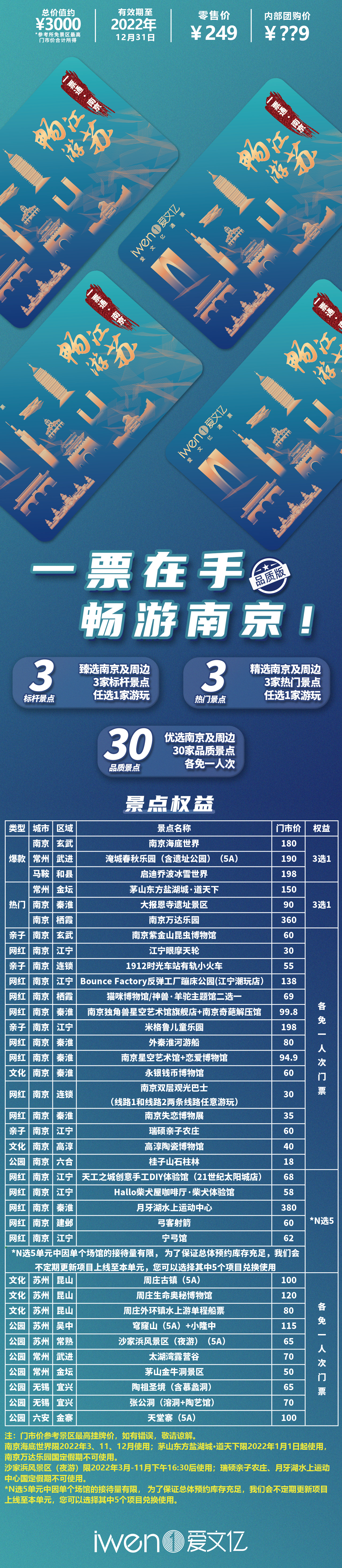 2022《暢游江蘇一票通·南京》作為《暢游長三角一票通》系列產(chǎn)品之一,主要面向南京地區(qū)企事業(yè)單位發(fā)行,是為了更好的豐富南京市民的文化休閑旅游生活,讓南京市民享受到了實實在在的旅游優(yōu)惠。