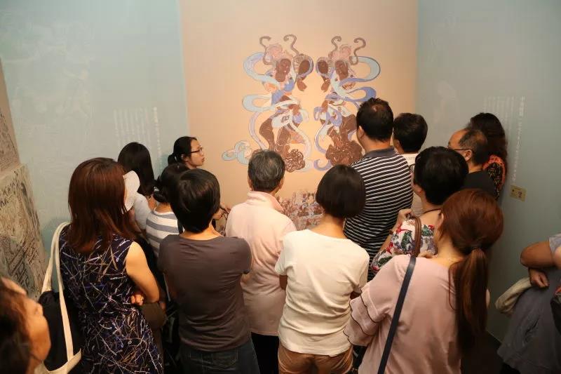 講座后學(xué)員們參觀了藝術(shù)館正在展出的“敦煌樂舞壁畫”展,這個展出半月吸引二萬多觀眾的展覽就非同凡響,繪畫VS音樂+壁畫VS科技=多元化跨界呈現(xiàn),CG特效+虛擬洞窟=敦煌展新模式,新媒體打造全息舞臺,多感官體驗(yàn)動態(tài)樂舞,學(xué)員們似乎身臨其境入洞而棲,伎樂回響、舞動敦煌,展覽讓古老壁畫上的人物動了起來,學(xué)員在志愿者生動而有情感的講解下,對敦煌樂舞壁畫在新媒體下的展現(xiàn)驚嘆不己,對敦煌文化的輝煌激動萬分。此次講座與參觀的新課堂形式得到了廣大學(xué)員們的歡迎和支持!