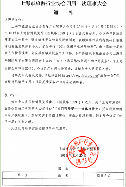上海市旅游行業(yè)協(xié)會四屆二次理事大會通知
