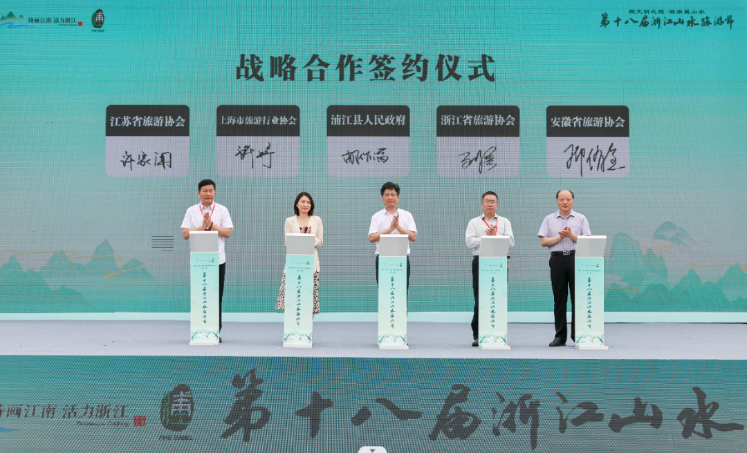 上海市旅游行業(yè)協(xié)會(huì)、江蘇省旅游協(xié)會(huì)、浙江省旅游協(xié)會(huì)、安徽省旅游協(xié)會(huì)與浦江縣人民政府簽訂戰(zhàn)略合作協(xié)議。